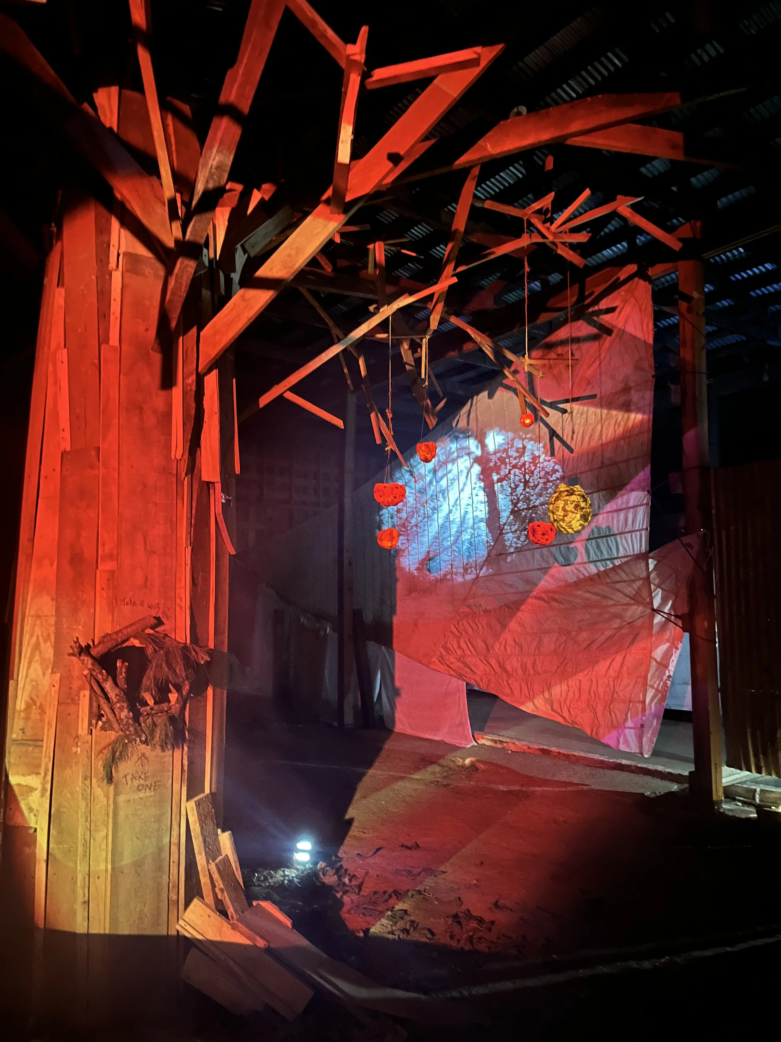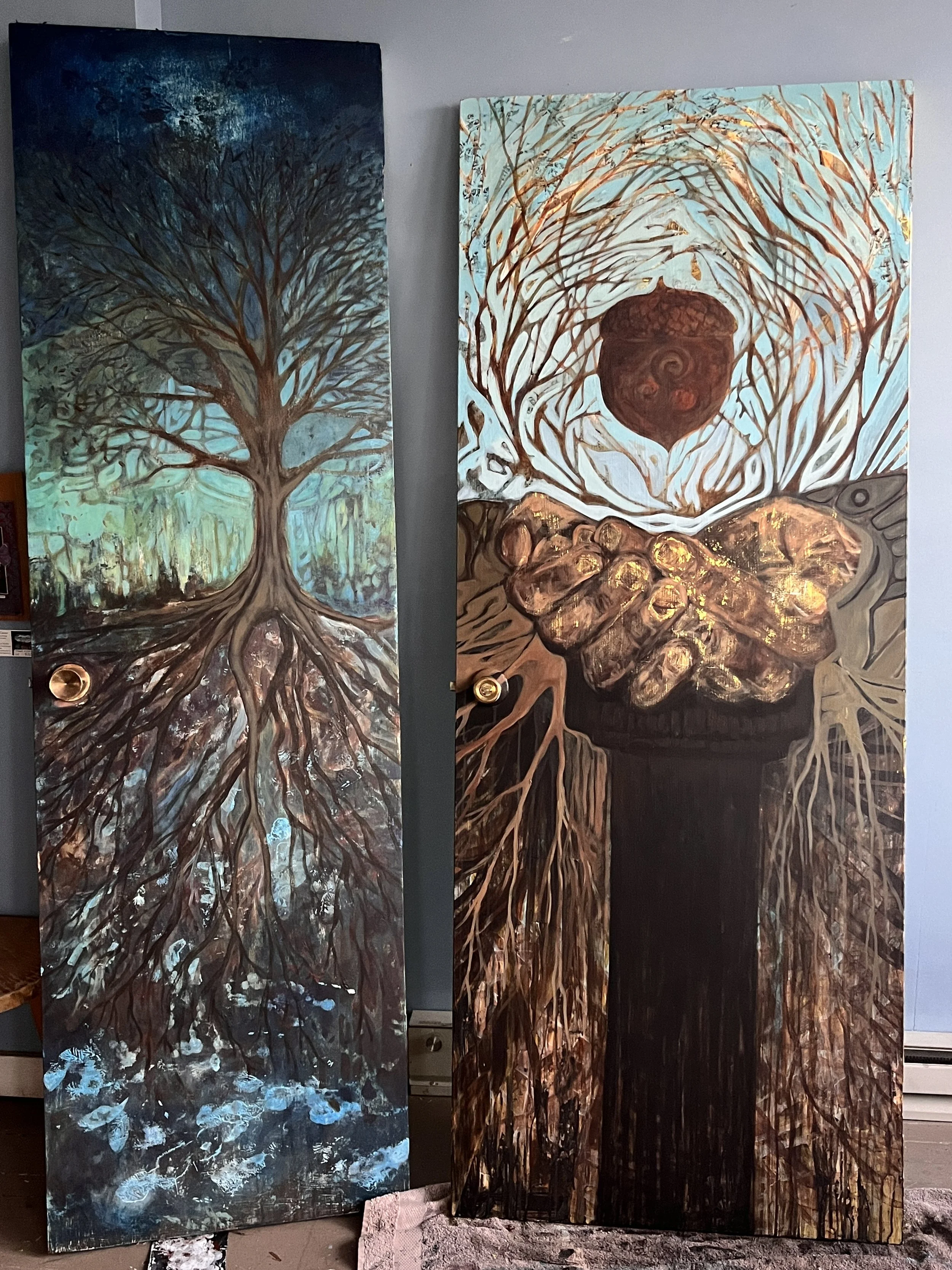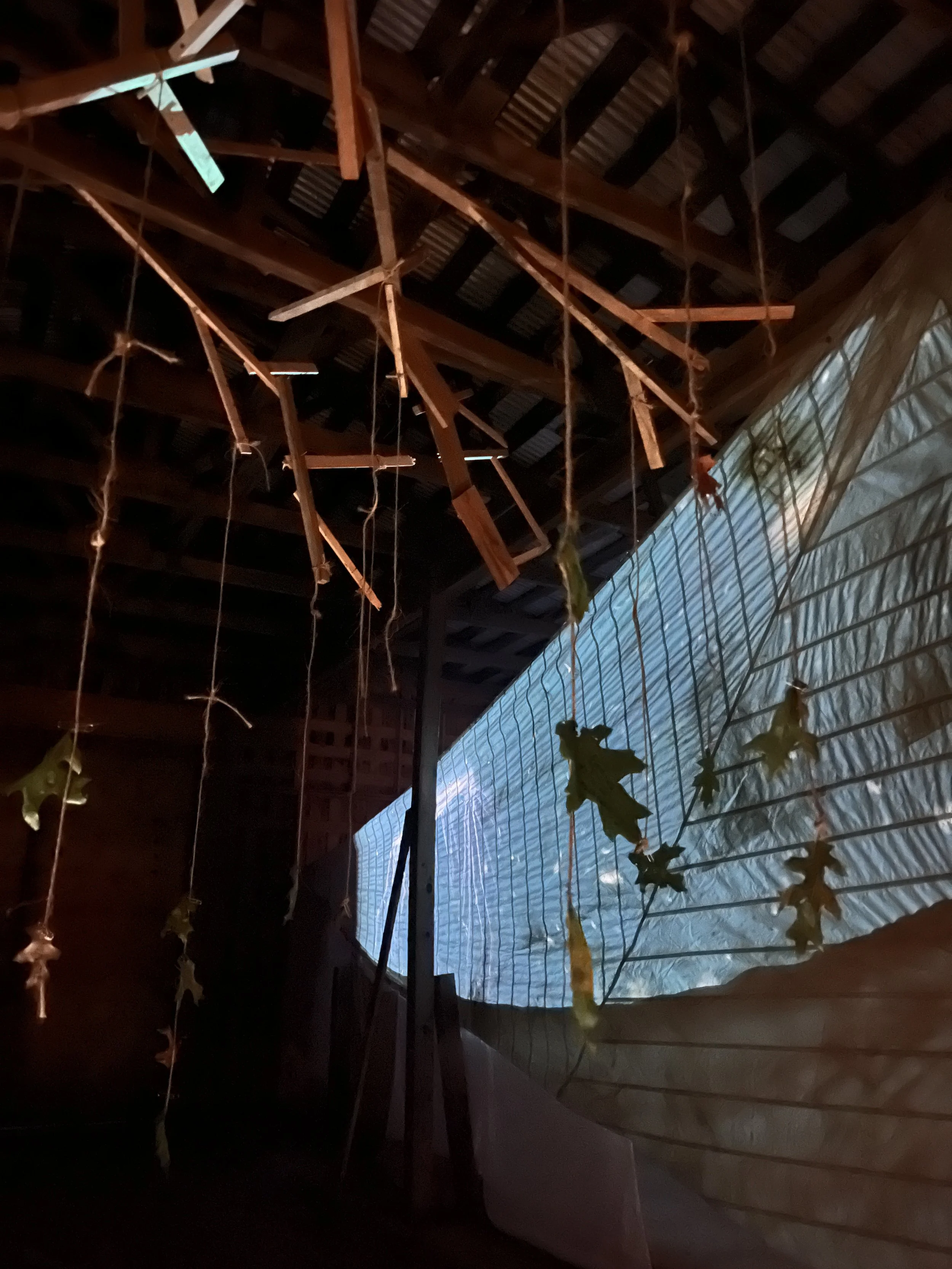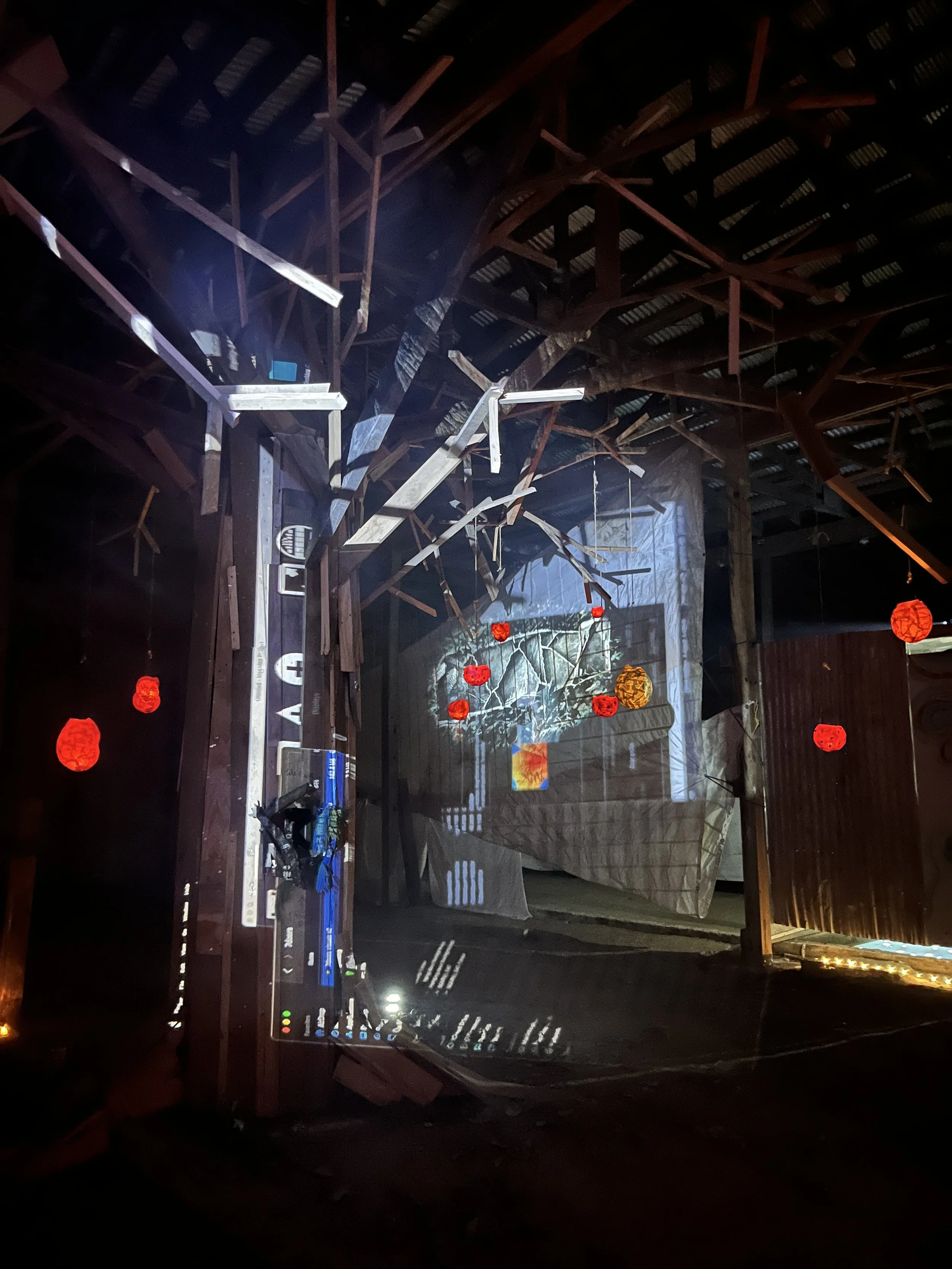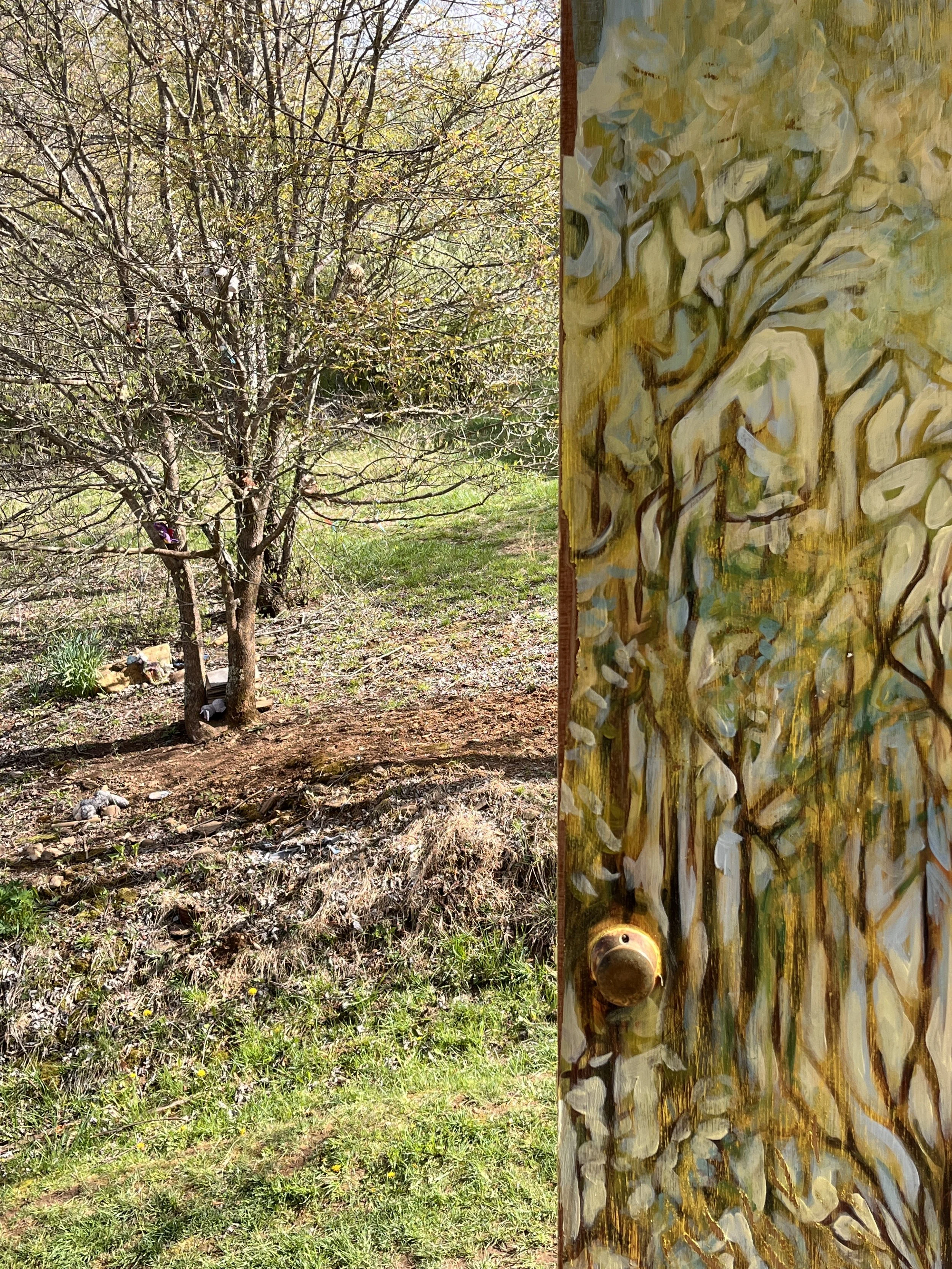 This immersive art experience was curated by local artists and community members, highlighting Sourced Design, the cultural design practiced and shared by Springhouse, an alternative school in Floyd VA. This experience highlights the work of local artist Lore Deighan, who donated her time and experience to create seven works of art with found and donated doors. Springhouse learner Elliot Reilly, apprenticed with local sculptor Charlie Brouwer, and created a large wooden sculpture central to the installation. With projections and lighting lead by DOME, it was a beautiful display of many artistic minds coming together to share these important design principles and values.